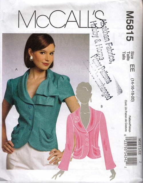 Mccalls Sewing Pattern 7693 Jackets Waistcoats Shawl Collar Picclick Uk